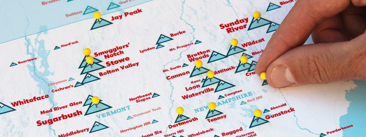 This decorative poster is a comprehensive map of lift-served skiing in New England—including everything from...
