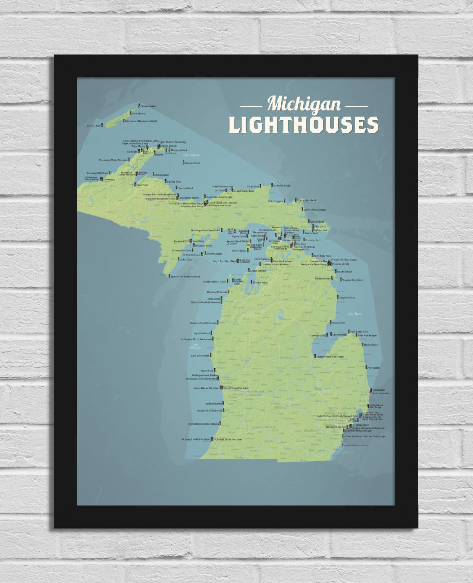 Michigan Lighthouses Map 18x24 Poster