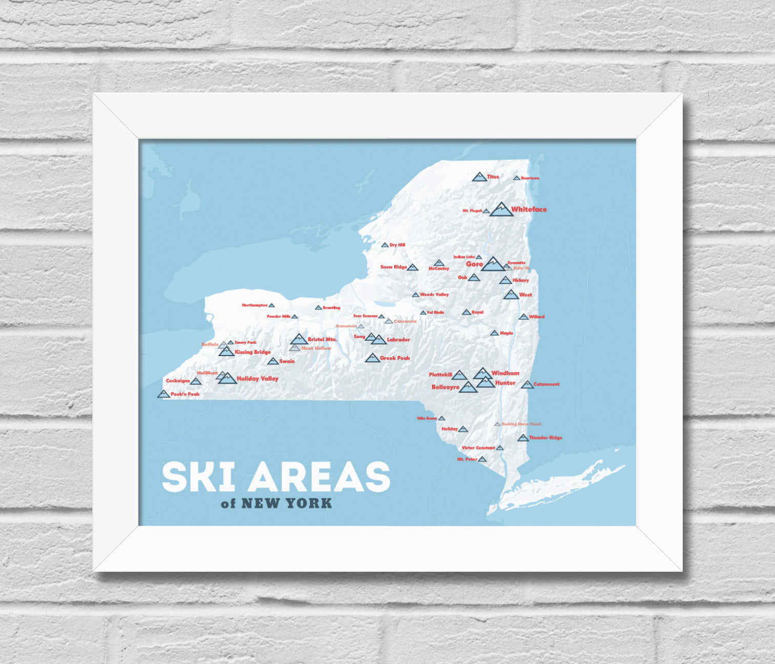 New York Ski Resorts Map 11x14 Print