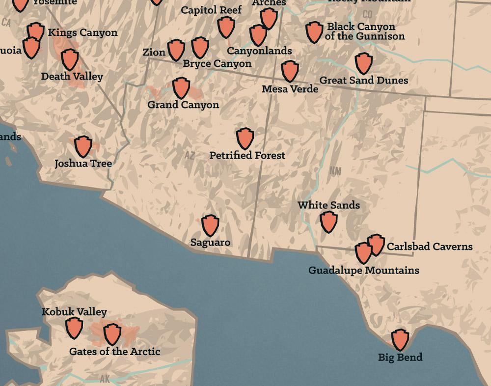 US National Parks Map 11x14 Print