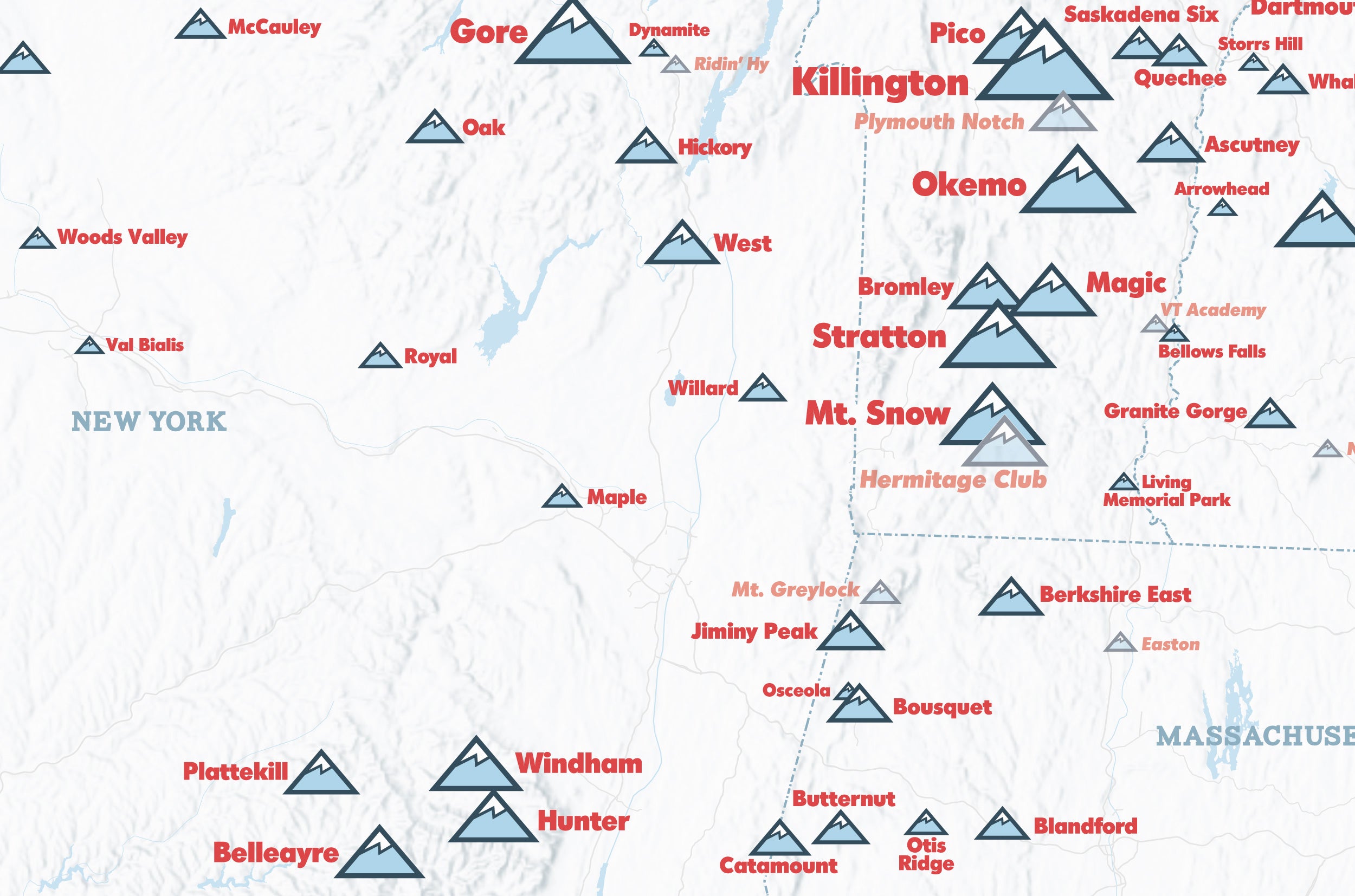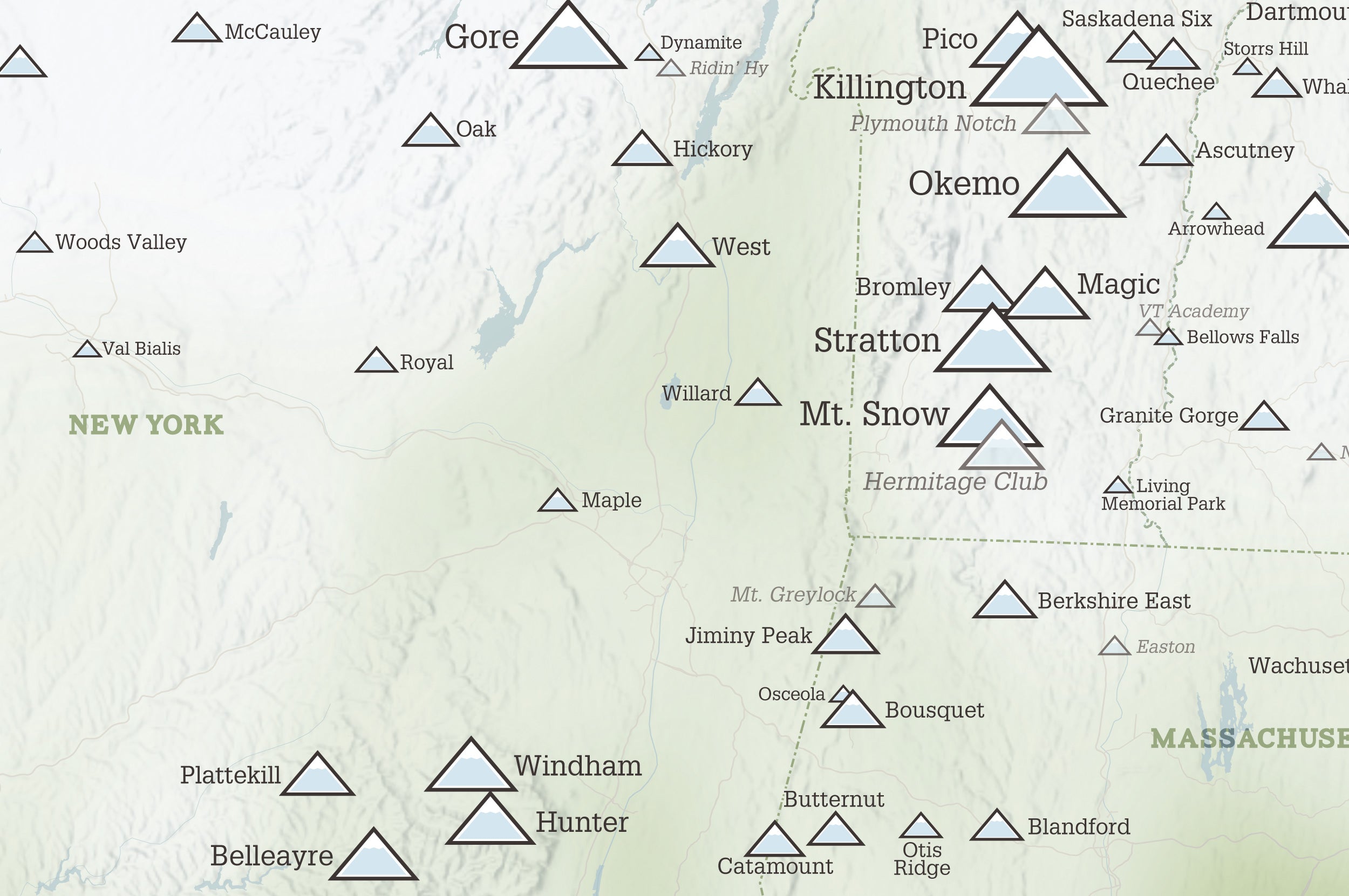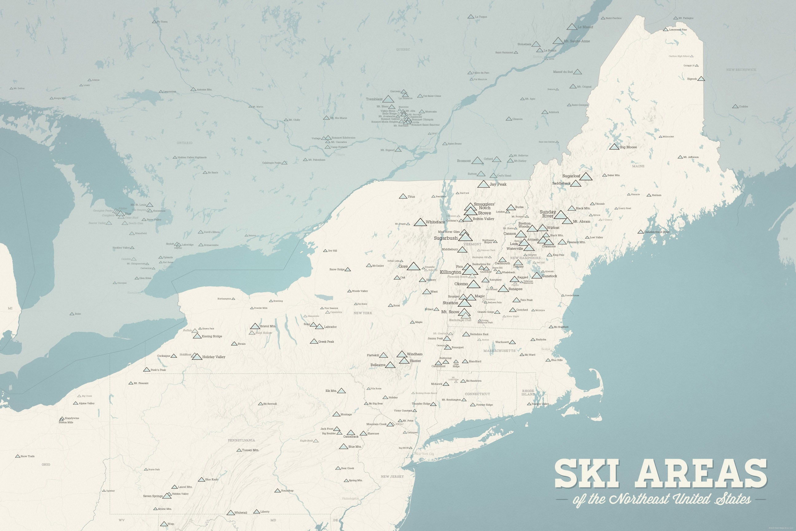 Skiing and snowboarding map posters featuring ski resorts across the United States, Canada, and North America. These maps highlight resort locations and geography, making them ideal for tracking resorts, planning trips, or exploring ski areas.