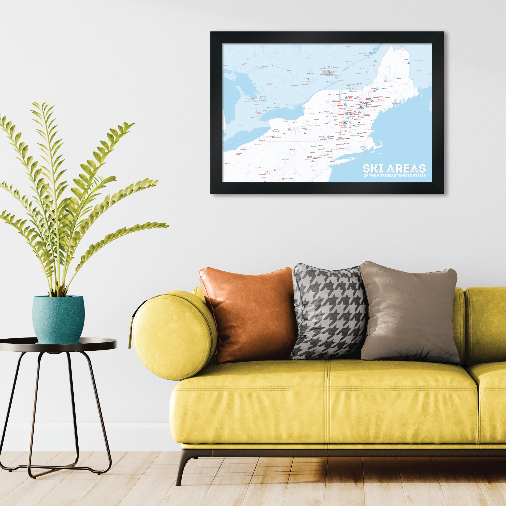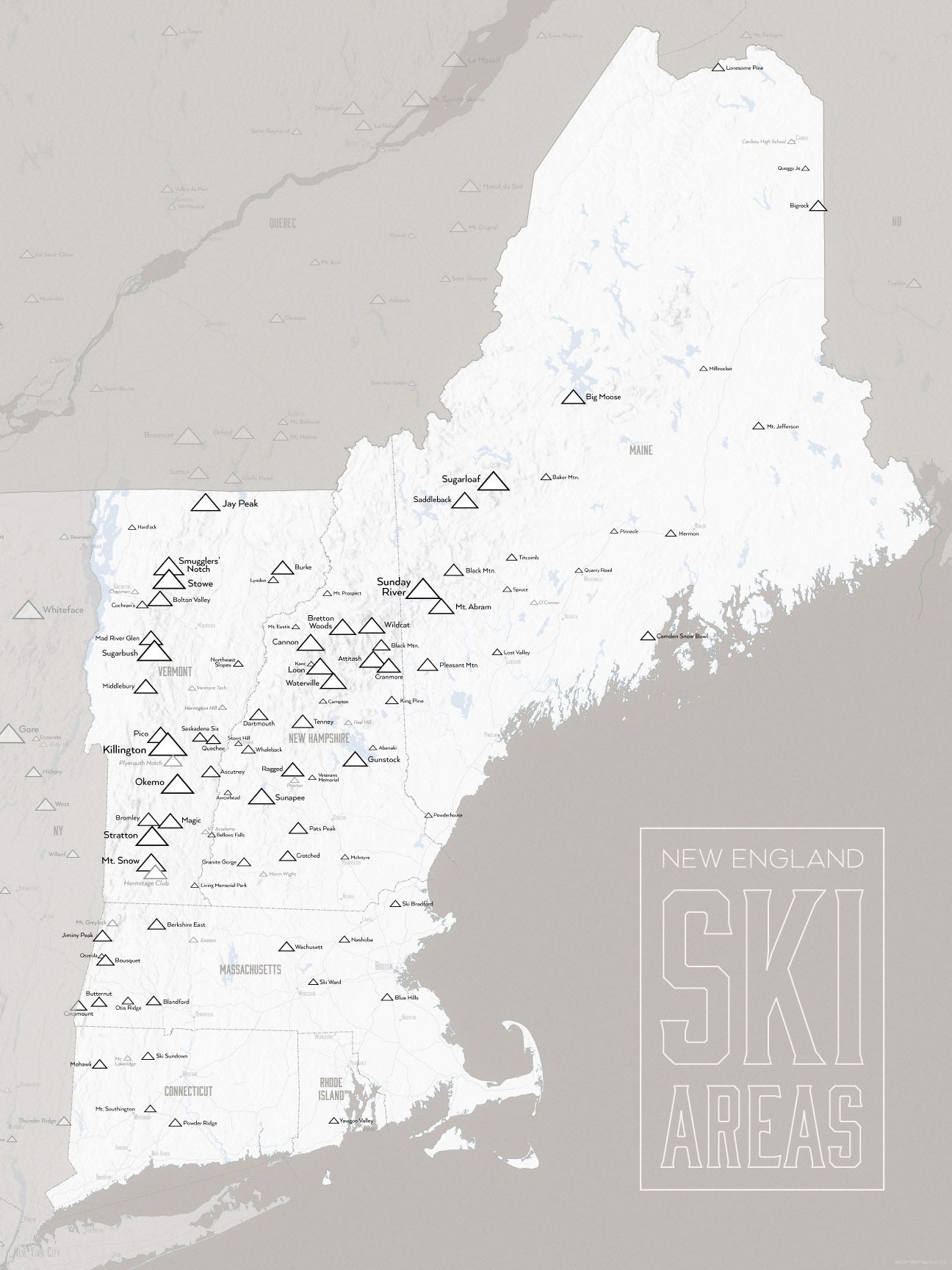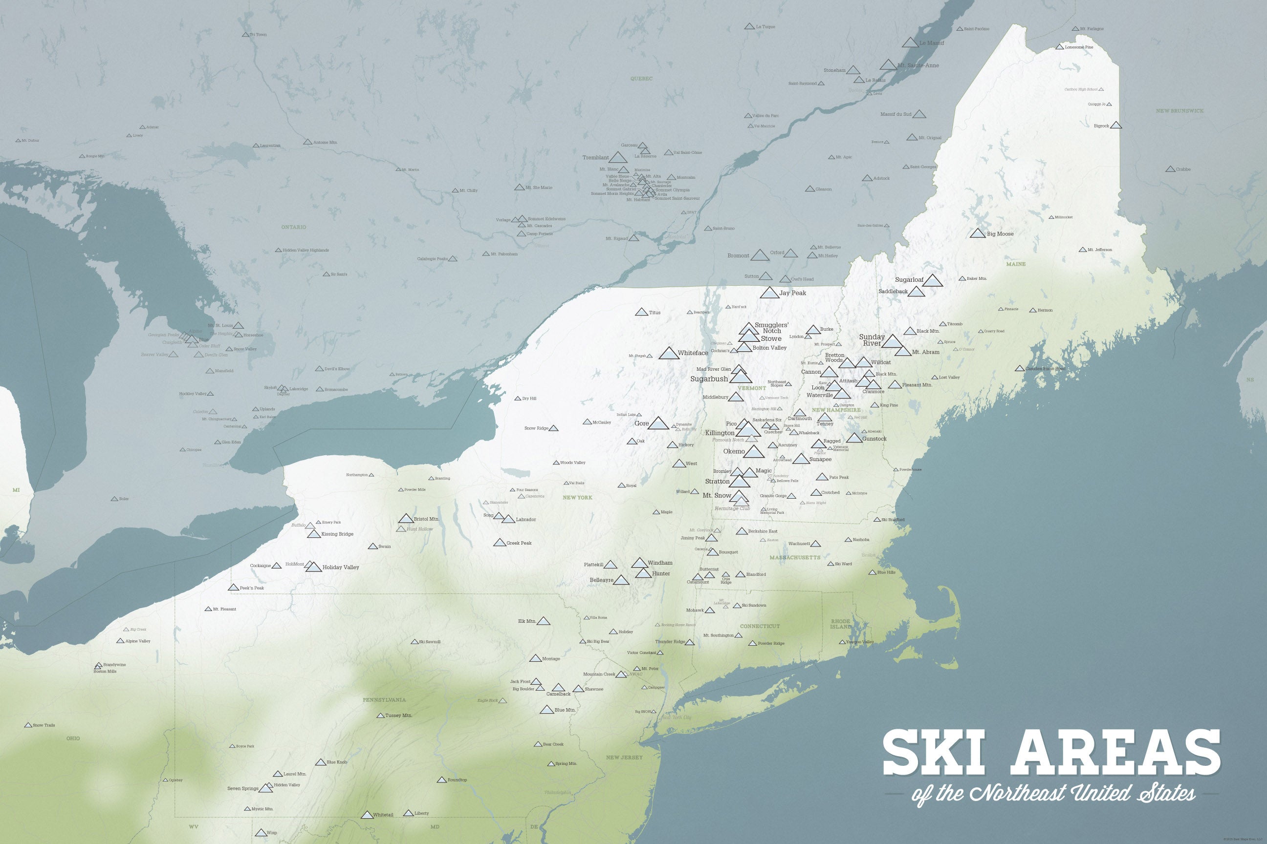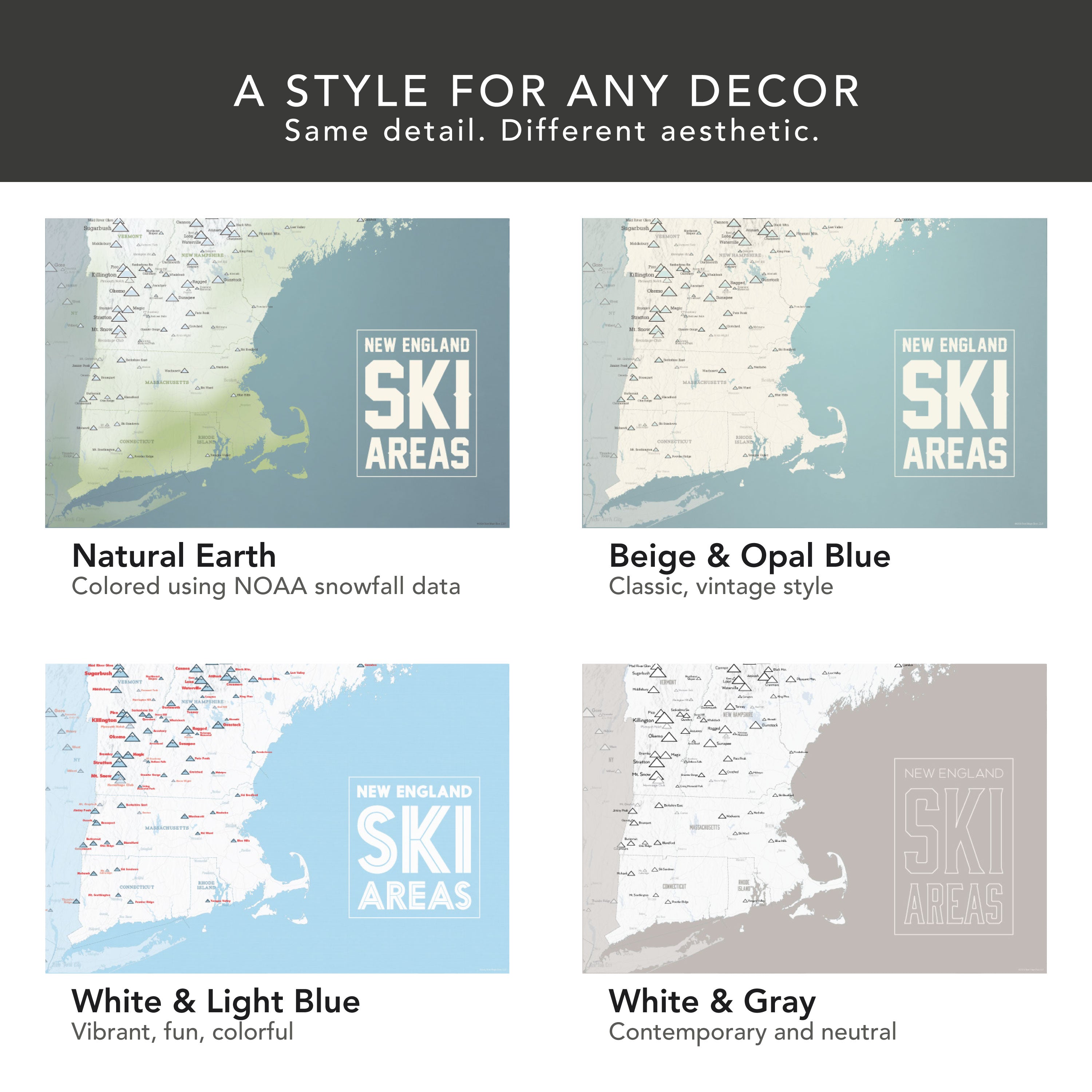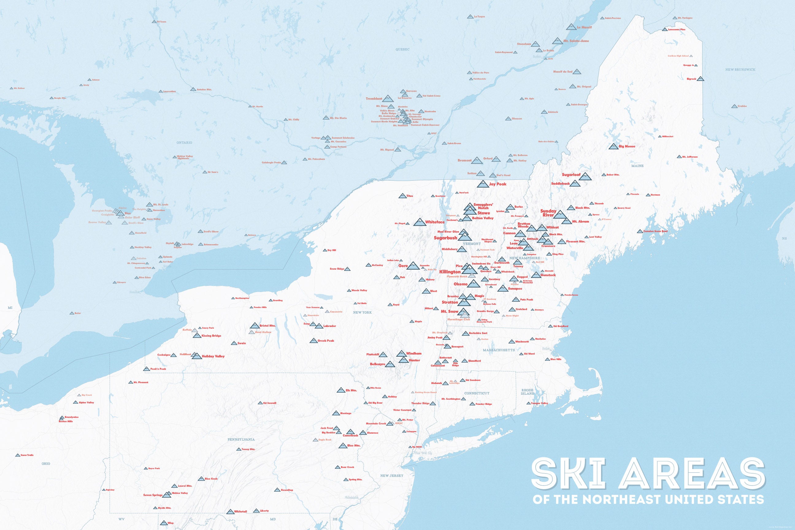 Skiing and snowboarding map posters featuring ski resorts across the United States, Canada, and North America. These maps highlight resort locations and geography, making them ideal for tracking resorts, planning trips, or exploring ski areas.