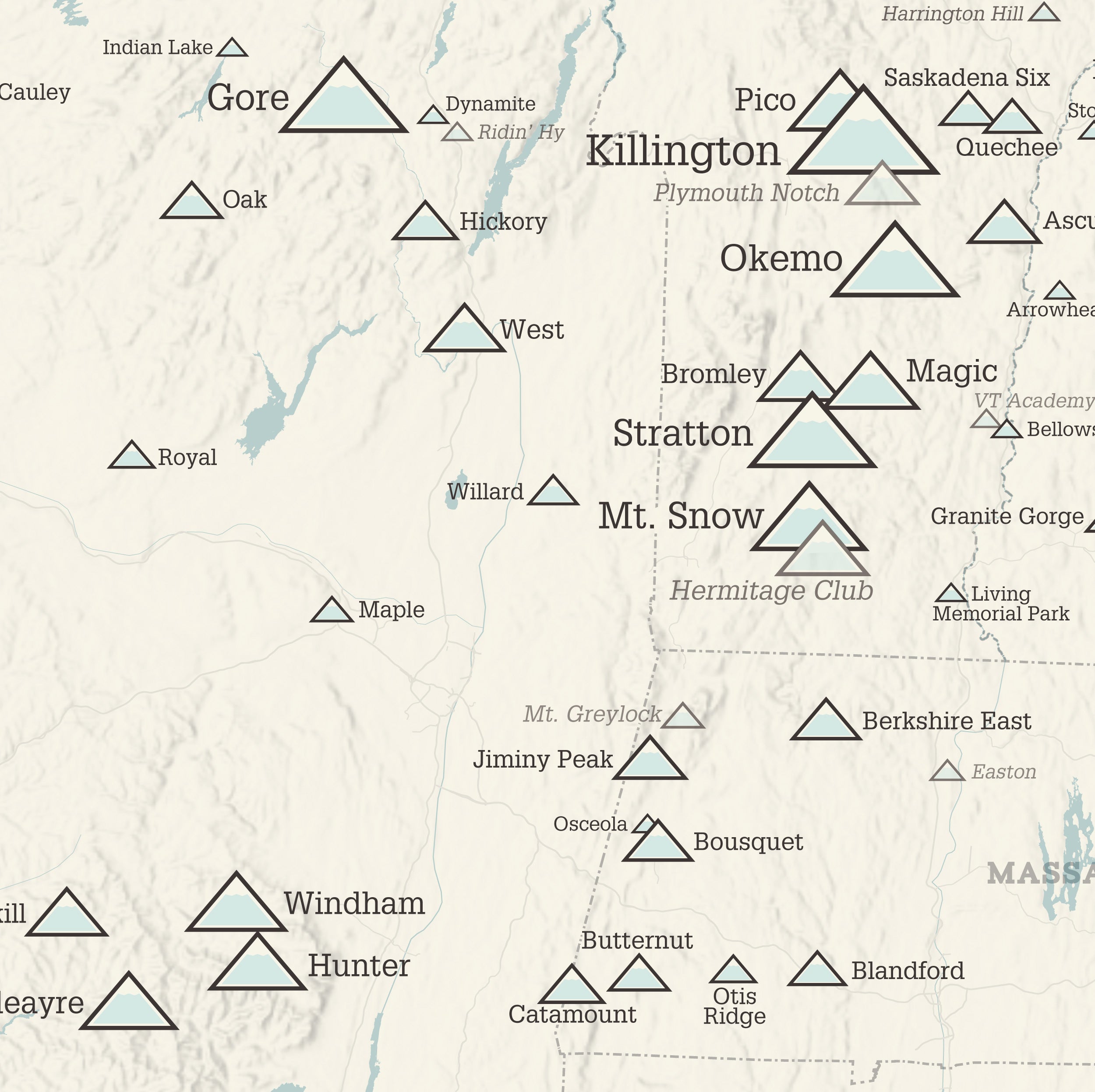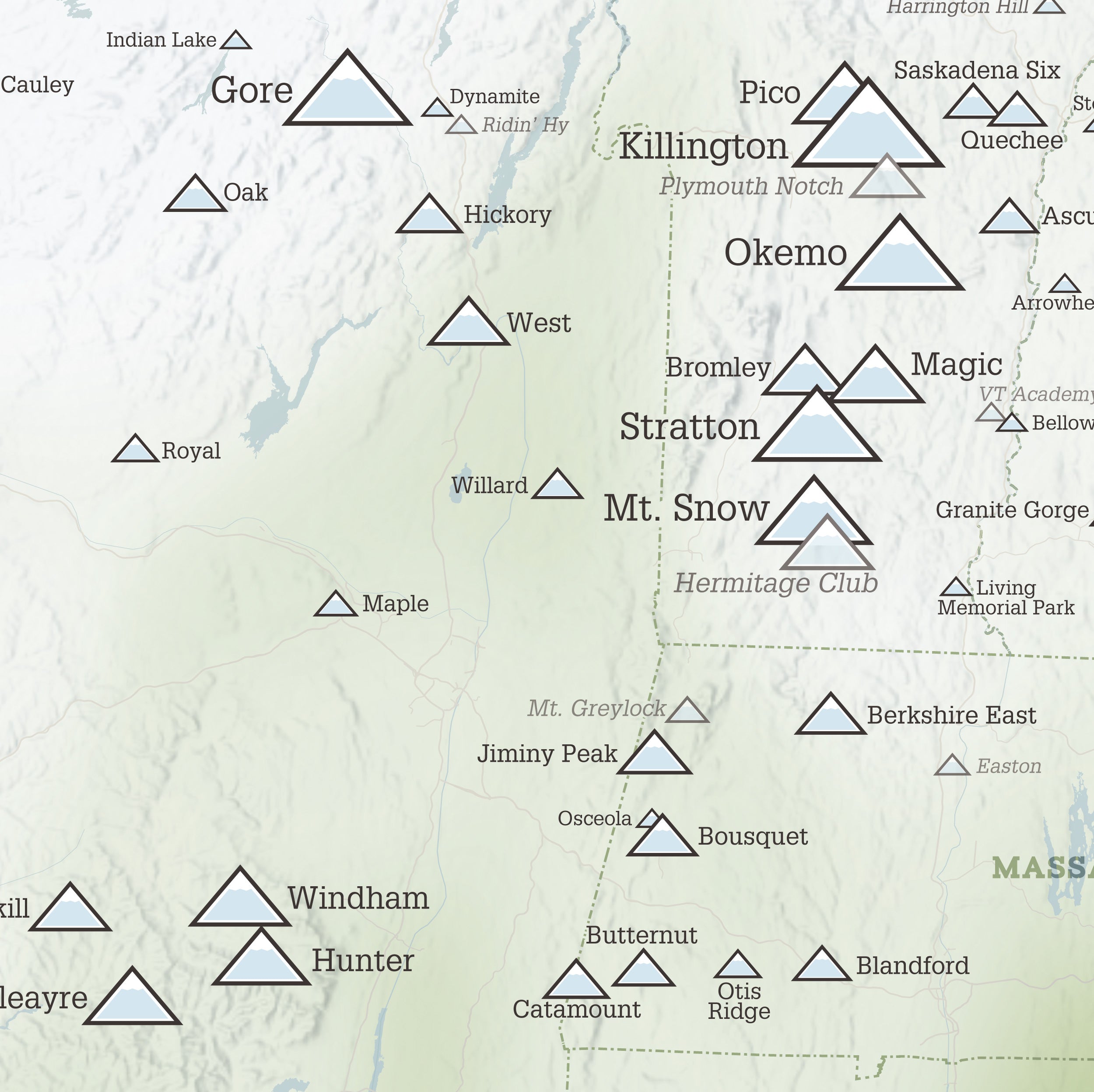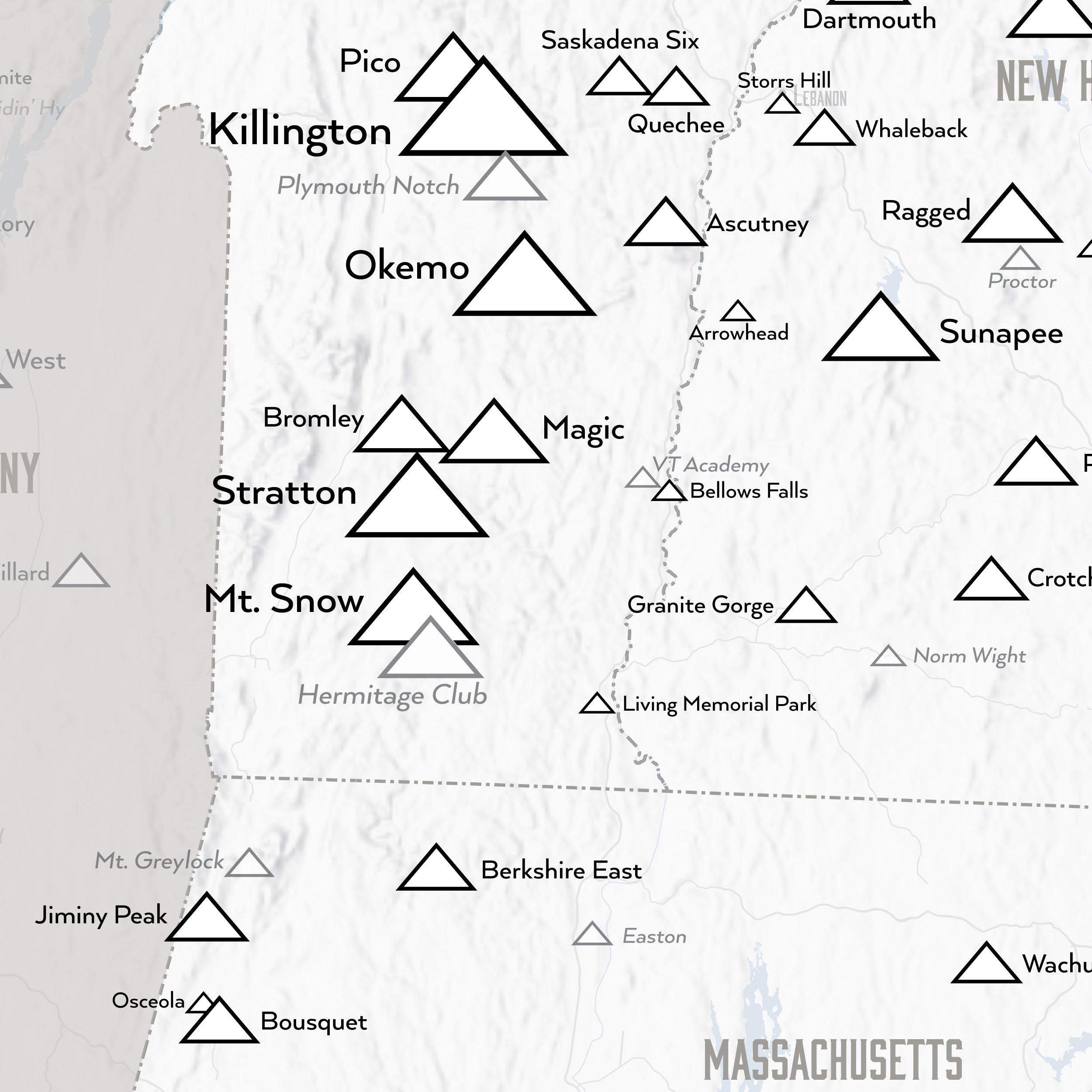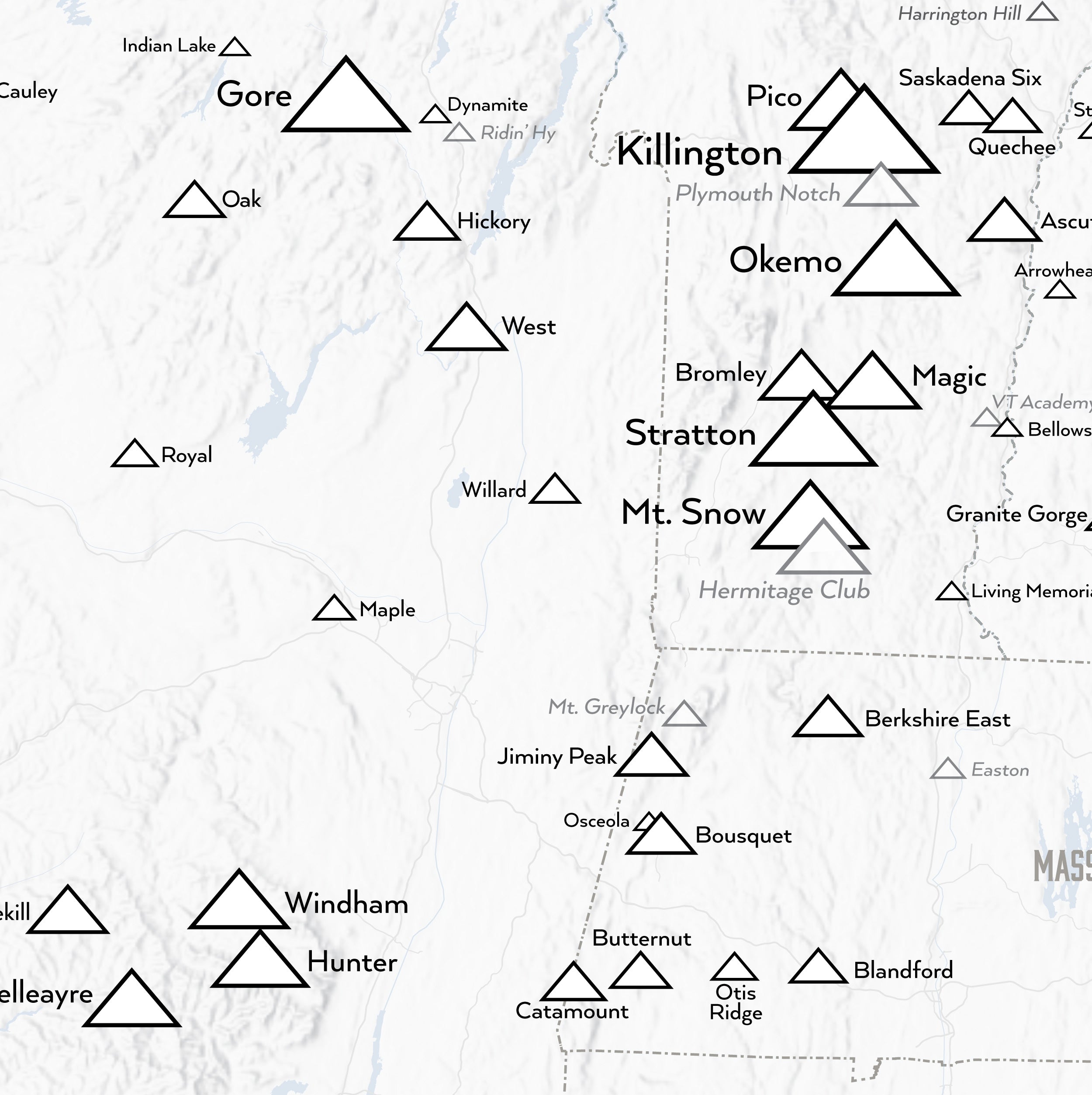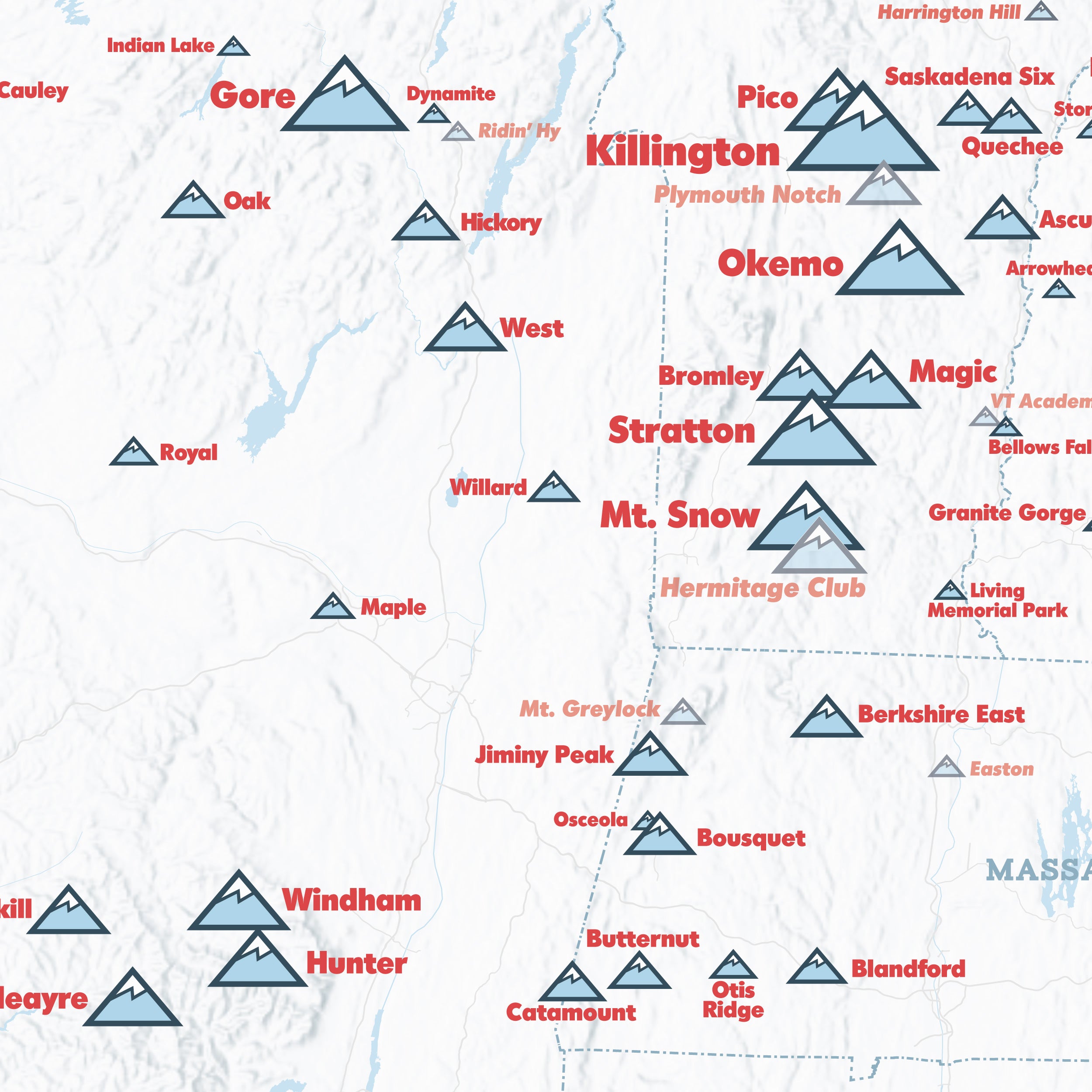 Skiing and snowboarding map posters featuring ski resorts across the United States, Canada, and North America. These maps highlight resort locations and geography, making them ideal for tracking resorts, planning trips, or exploring ski areas.