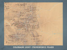 Colorado 2000' Prominence Peaks Map 18x24 Poster