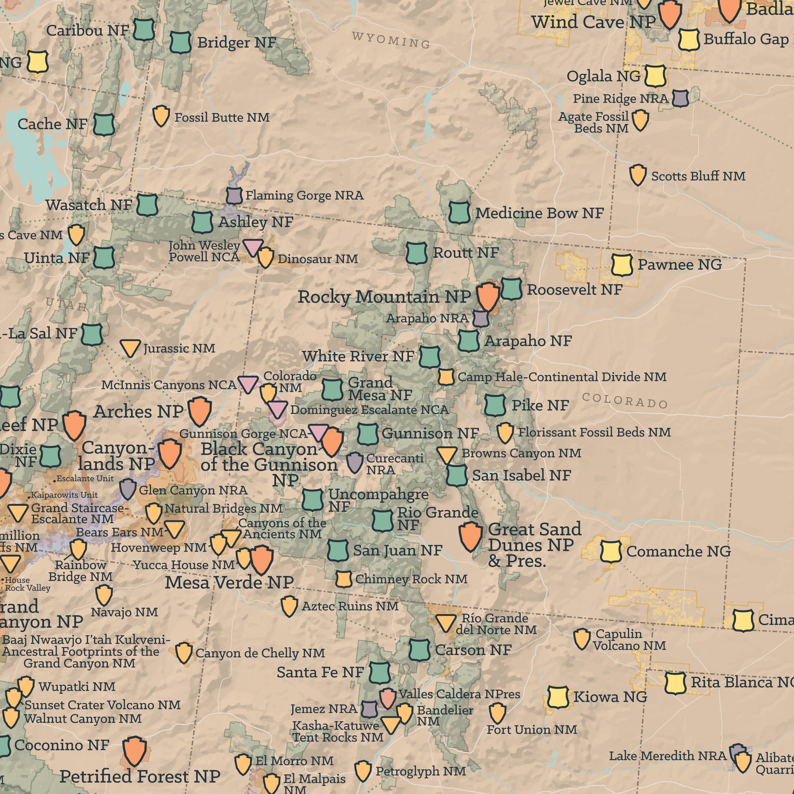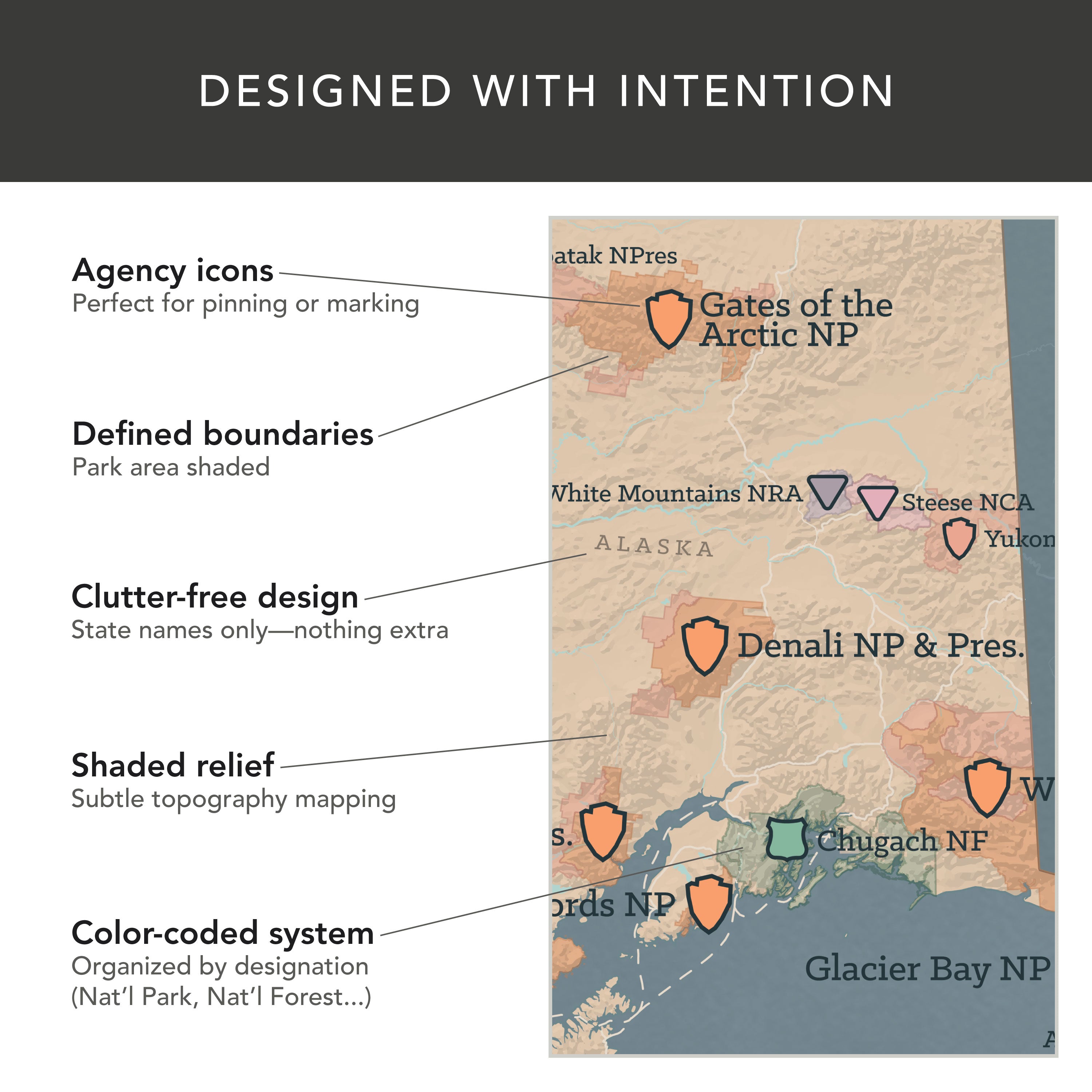 If you’re looking for a more complete representation—including Bureau of Land Management (BLM), Fish & Wildlife Service areas, and additional federal units—we recommend our Interagency Federal Lands Map so you aren't missing anything!